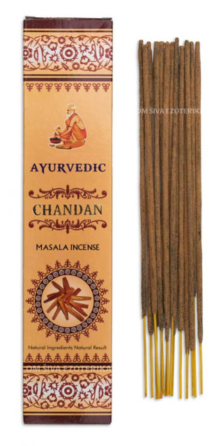 Dišeče palčke Ayurvedic masala Chandan - Sandalovina so edinstvena dišeča mešanica redkih zelišč, cvetlic, smol, medu in olj.