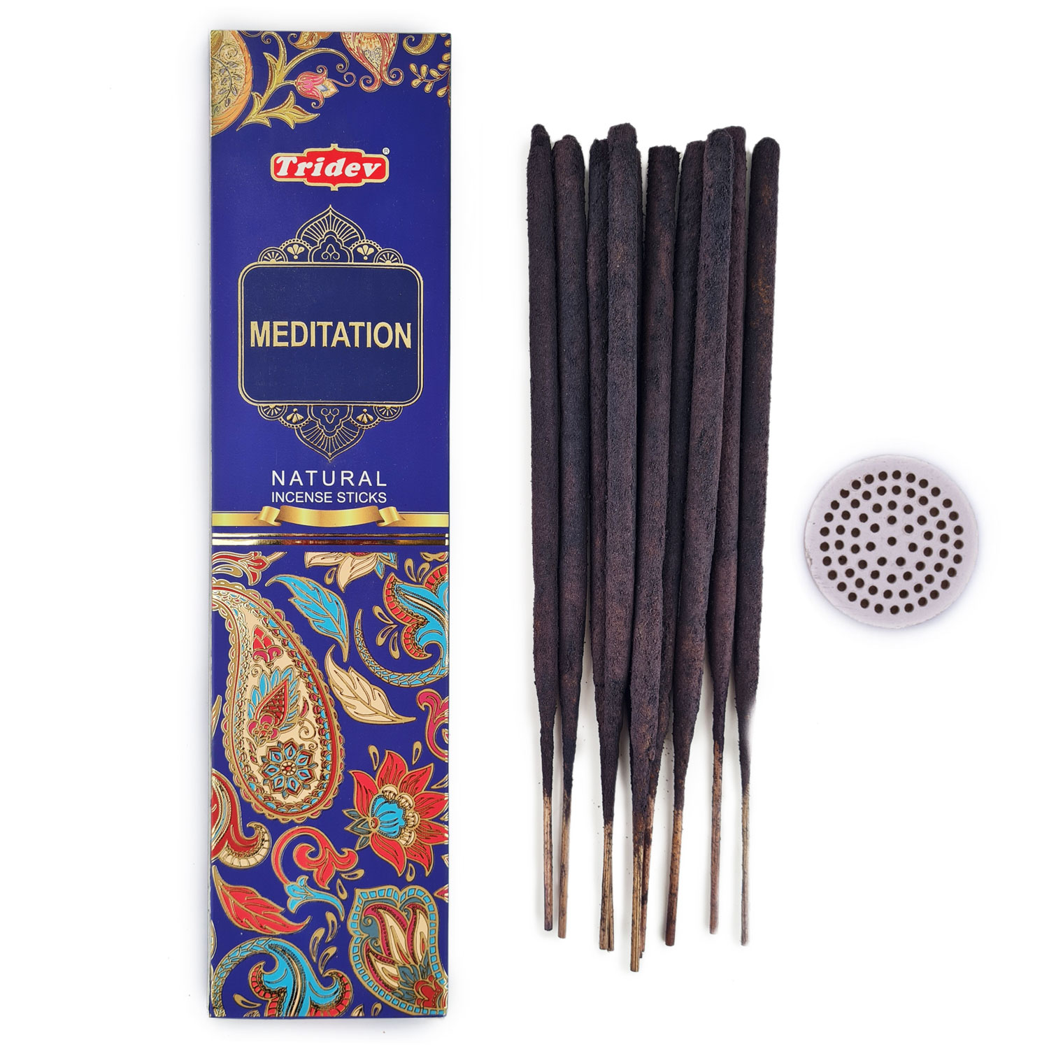 Dišeče palčke Tridev Meditation Natural Jumbo Masala so vrhunske, ročno izdelane indijske dišeče palčke iz naravnih sestavin. Odlikuje jih visoka kakovost in edinstvena aroma. So debelejše od običajnih, kar zagotavlja daljše trajanje gorenja (60-70 minut) in intenzivnejši vonj. Narejene so po masala metodi, kar pomeni, da vse sestavine zmešajo v pasto, ki jo nato zvaljajo na bambusovo palčko ter posušijo. Ta metoda omogoča bogatejši in dolgotrajnejši vonj v primerjavi s tistimi, ki so narejene z metodo potapljanja ali namakanja.