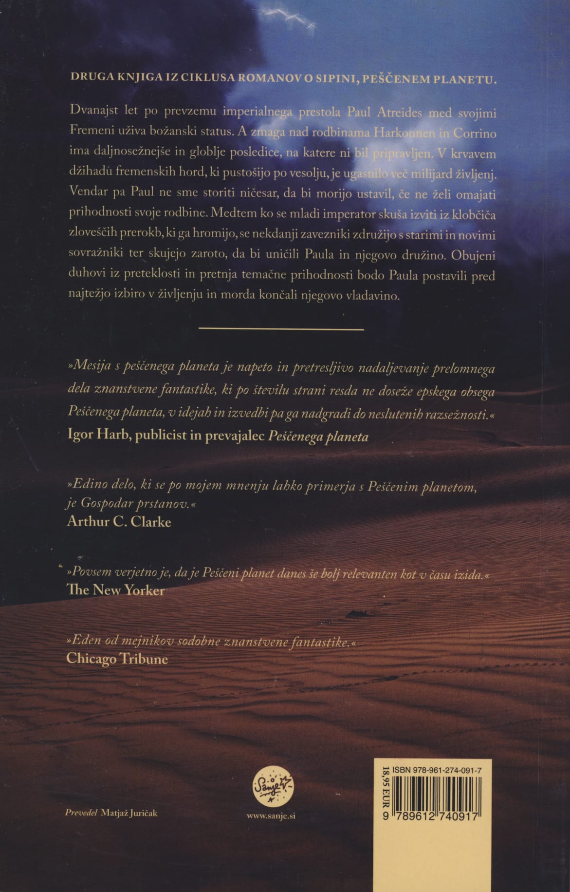 Mesija s peščenega planeta velja za najkontroverznejši del sage o Sipini. Pronicljiva pripoved o moči, korupciji in (zlo)rabi oblasti bralcev ne pušča ravnodušnih in meče novo luč na dogodke iz prve knjige.