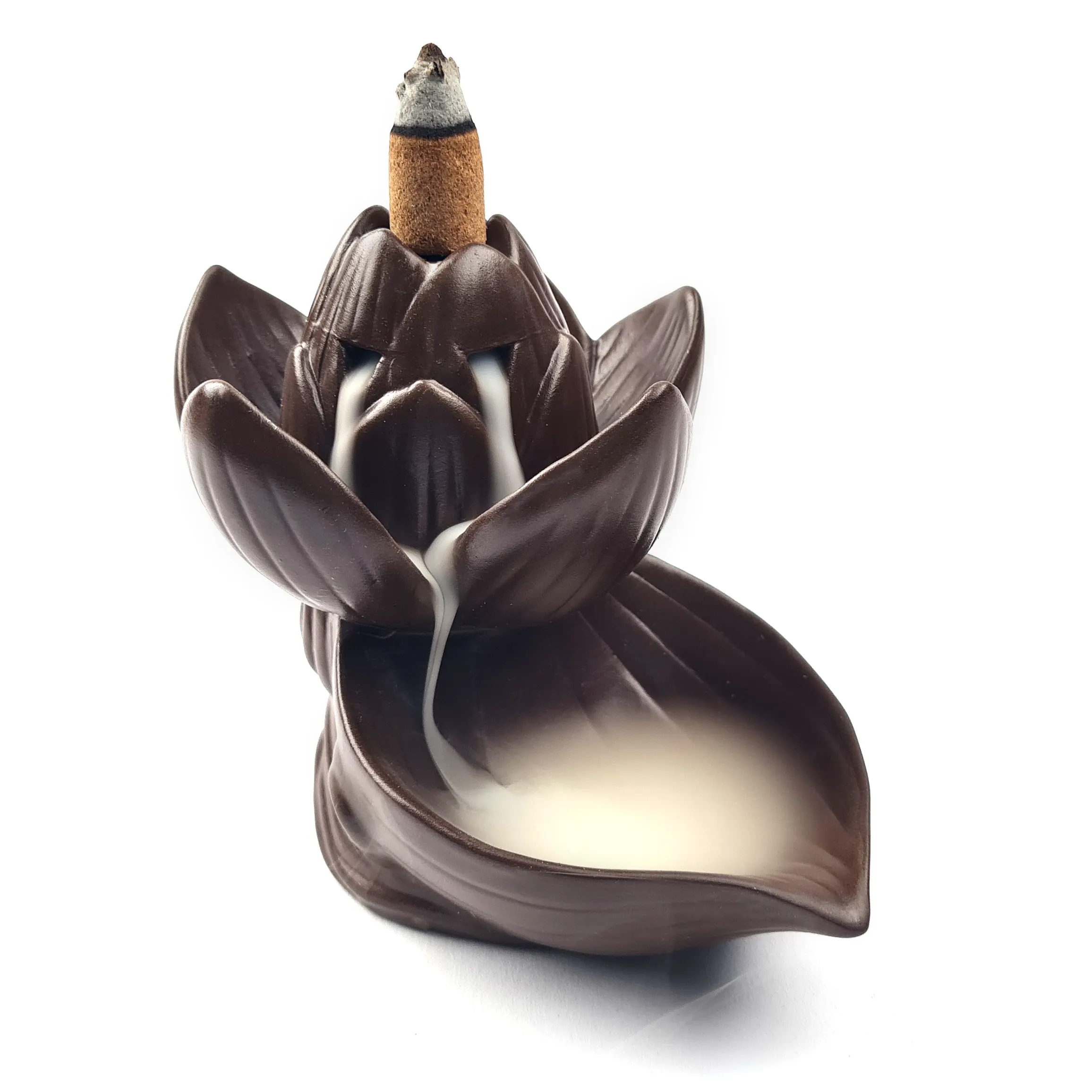 Prefinjena dimna fontana v obliki odprtega lokvanja je zasnovana posebej za backflow dišeče stožce. Ko prižgete stožec, se dim počasi spušča med cvetnimi listi in se zbira v spodnjem bazenčku, kar ustvari nežen dimni slap in pomirjujoč vizualni učinek.