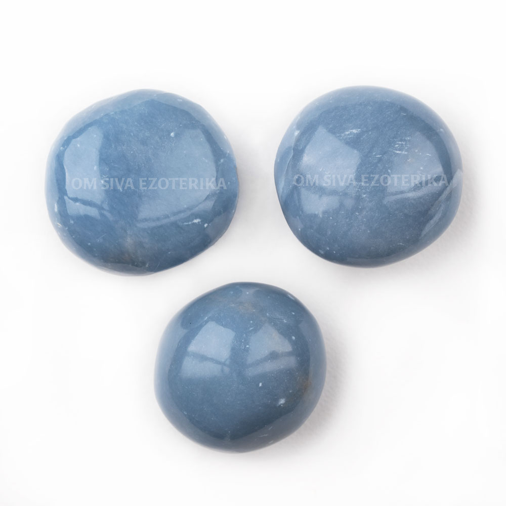 | Čiščenje kamna | Angelit je mehak mineral, ki se pretvori v sadro, če ga potopite v vodo, zato ga NE nosite med kopanjem ali plavanjem, niti ga čistite z vodo. O primernem načinu čiščenja kamnov si preberite na našem blog zapisu. Po čiščenju kamen napolnite s pozitivno energijo. To lahko storite tako, da ga držite v rokah in si predstavljate, da ga obdaja bela svetloba. |