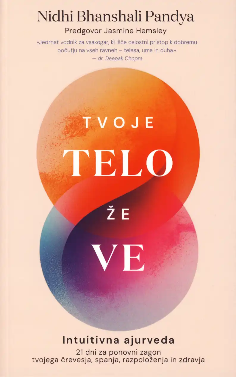 Knjiga Tvoje telo že ve avtorice Nidhi Bhanshali Pandya je prijazno in razumljivo vodilo skozi življenje v sožitju s telesom. S preprostim pristopom nas popelje do tega, kako prisluhniti lastnemu telesu in razumeti njegove znamenja. Ponuja 21-dnevni načrt, ki pomaga okrepiti črevesje, izboljšati spanec, uravnovesiti razpoloženje in okrepiti vitalnost. Ta knjiga ni naporna z vsiljivimi priporočili, temveč nas spodbuja k naravni in lahkotni preobrazbi, ki nas poveže z notranjo modrostjo, ki je že v nas. Je čudovit sopotnik na poti do boljšega počutja in celostnega zdravja.